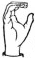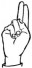 На ћирилици написано ТАНКОСА ВЕЛИМИРОВИЋ састоји се из 18 слова [?]. Исписано ћириличном једноручном азбуком за глувонеме: